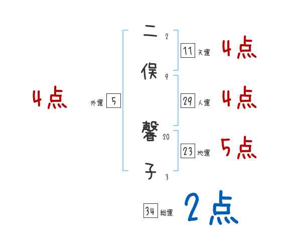 二俣馨子さんの画数の鑑定結果