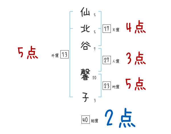 仙北谷馨子さんの画数の鑑定結果