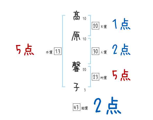 髙原馨子さんの画数の鑑定結果