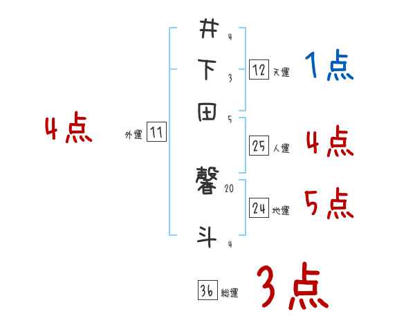 井下田馨斗さんの画数の鑑定結果
