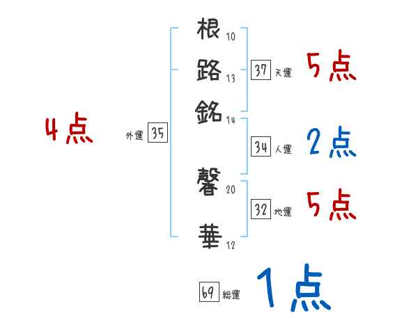根路銘馨華さんの画数の鑑定結果