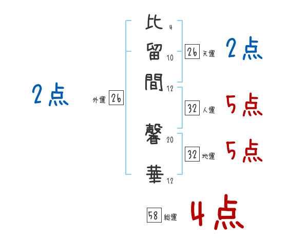 比留間馨華さんの画数の鑑定結果