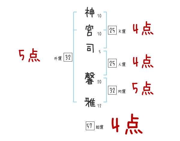 神宮司馨雅さんの画数の鑑定結果