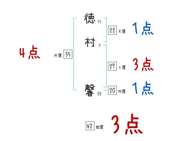 外運![]() | 徳村馨さんの外運は35画の4つ星!温厚な性格で感受性が高い。穏和な性格で人望が厚い。 生活面を象徴する運勢です。外部から受ける影響力を表し、結婚運、家庭運や職場、環境への順応性を表します。 |