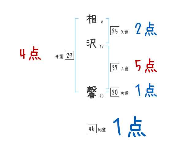 外運![]() | 相沢馨さんの外運は29画の4つ星!完全主義で才能がある。厳格な心の持ち主。 生活面を象徴する運勢です。外部から受ける影響力を表し、結婚運、家庭運や職場、環境への順応性を表します。 |