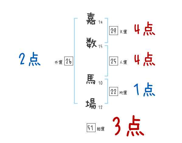 家系が持つ宿命的な運勢を表します。祖先から受け継いだ苗字ですので自分の力が及びません。家柄を象徴します。