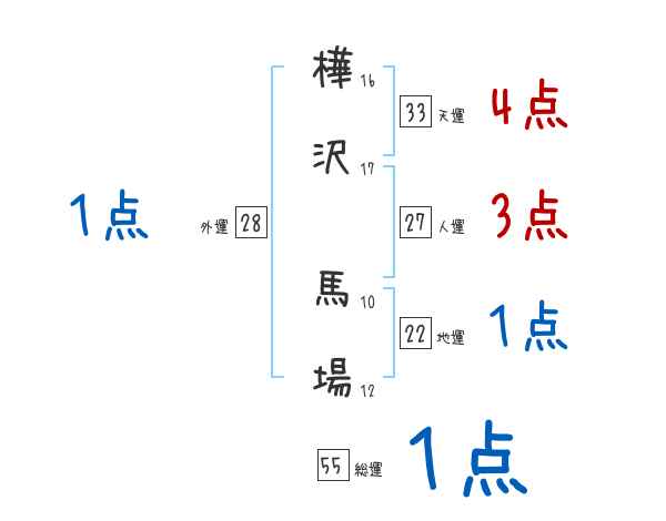 樺沢馬場さんの画数の鑑定結果