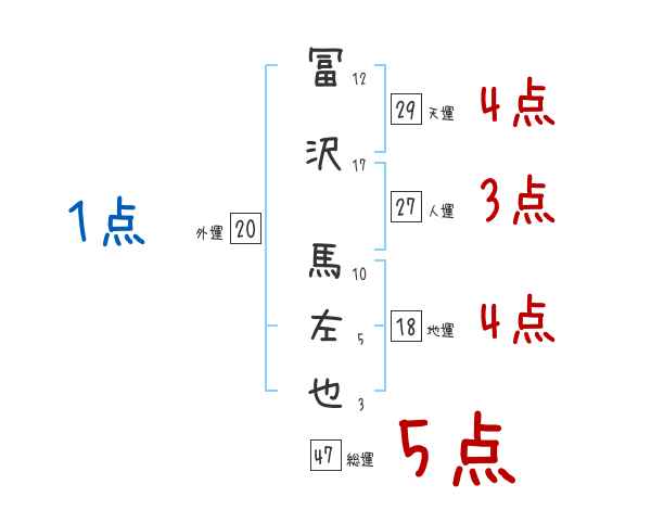 冨沢馬左也さんの画数の鑑定結果