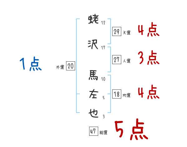 総運![]() | 蛯沢馬左也さんの総運は47画の5つ星!実力が開花し発展する円満な人生。財に恵まれる。 あなたの人生を表す1番重要な運勢です。生涯を通じて影響する総合運となり、主に50歳以降の晩年期に影響を及ぼします。 |