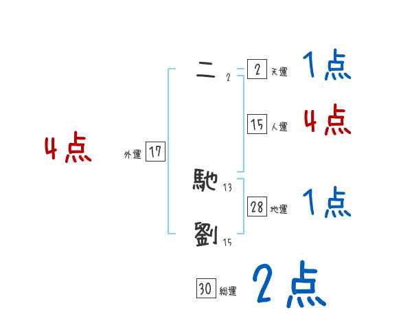 二馳劉さんの画数の鑑定結果