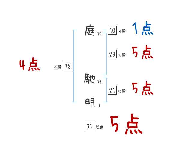 庭馳明さんの画数の鑑定結果