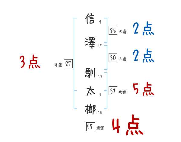 信澤馴太榔さんの画数の鑑定結果