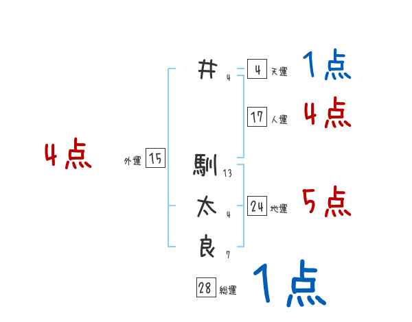 井馴太良さんの画数の鑑定結果