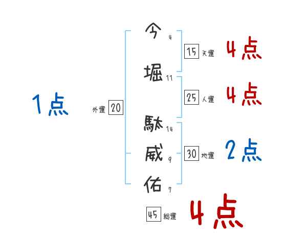 今堀駄威佑さんの画数の鑑定結果