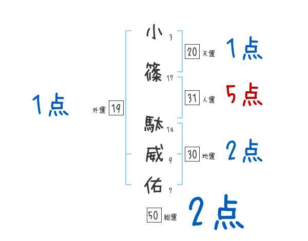 外運![]() | 小篠駄威佑さんの外運は19画の1つ星!優れた才能を持ちますが、協調性が足りないことも。周りの人と協力する事を意識しましょう。 生活面を象徴する運勢です。外部から受ける影響力を表し、結婚運、家庭運や職場、環境への順応性を表します。 |