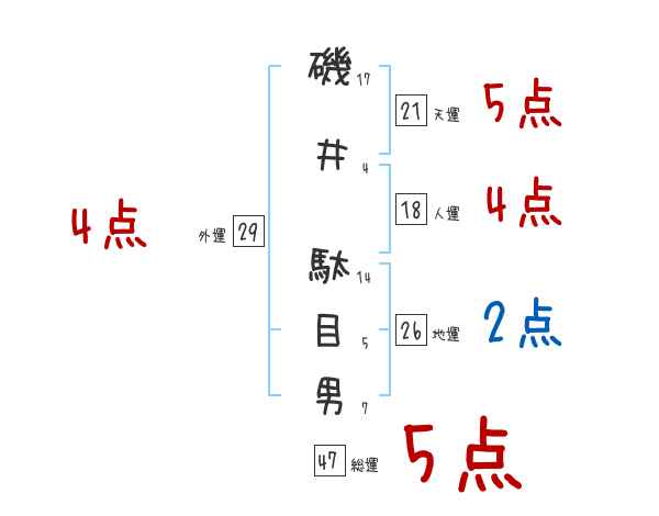 磯井駄目男さんの画数の鑑定結果