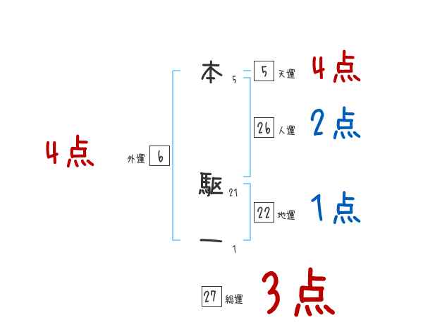 本駆一さんの画数の鑑定結果