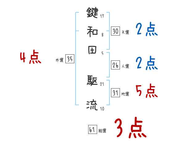 鍵和田駆流さんの画数の鑑定結果