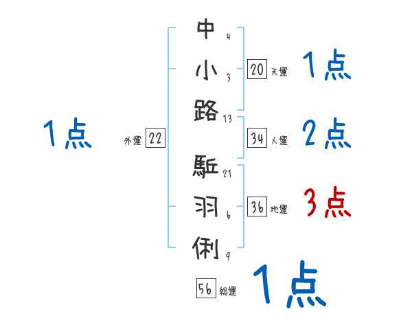 外運![]() | 中小路駈羽俐さんの外運は22画の1つ星!努力することが苦手ないっぽう手先が器用。芸術性にも優れる。 生活面を象徴する運勢です。外部から受ける影響力を表し、結婚運、家庭運や職場、環境への順応性を表します。 |