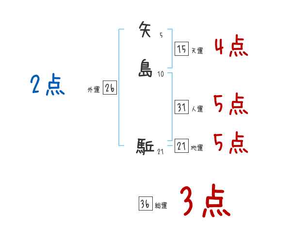 外運![]() | 矢島駈さんの外運は26画の2つ星!波瀾万丈かも。信頼できる人を大事にしましょう。 生活面を象徴する運勢です。外部から受ける影響力を表し、結婚運、家庭運や職場、環境への順応性を表します。 |