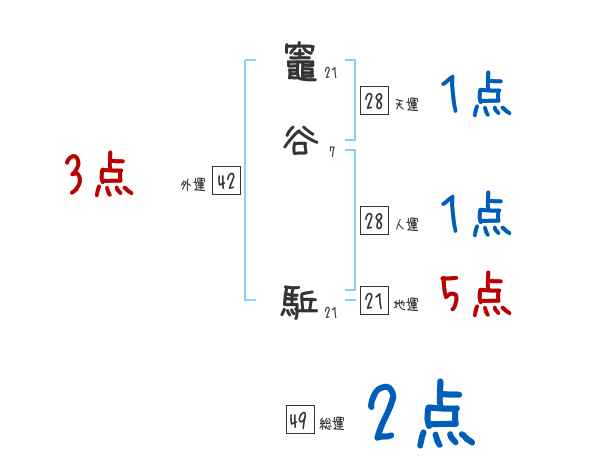 竈谷駈さんの画数の鑑定結果