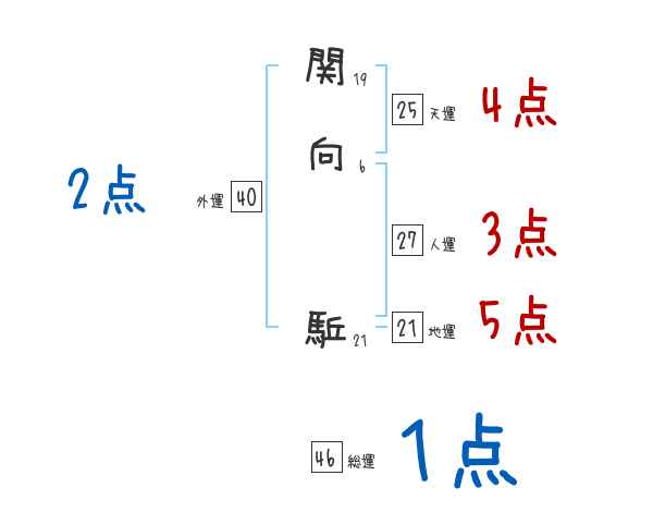 関向駈さんの画数の鑑定結果
