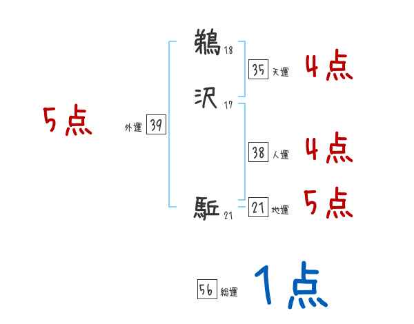 鵜沢駈さんの画数の鑑定結果