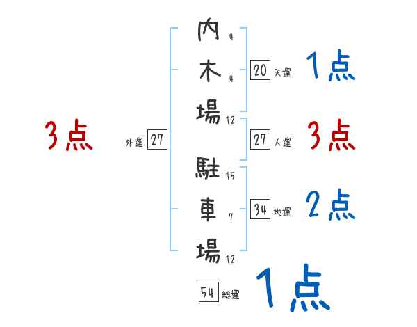 内木場駐車場さんの画数の鑑定結果