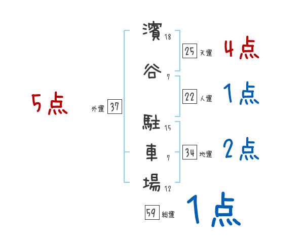 濱谷駐車場さんの画数の鑑定結果