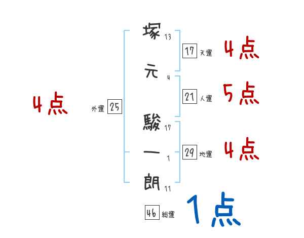 塚元駿一朗さんの画数の鑑定結果