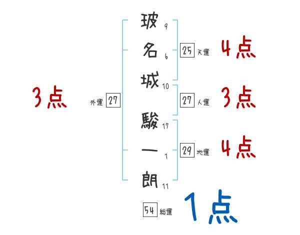 玻名城駿一朗さんの画数の鑑定結果