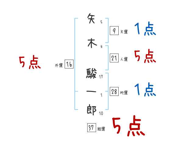 矢木駿一郎さんの画数の鑑定結果