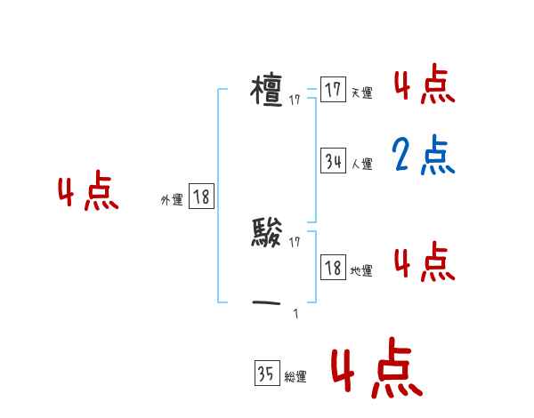 檀駿一さんの画数の鑑定結果