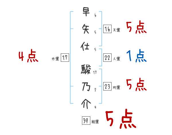 早矢仕駿乃介さんの画数の鑑定結果