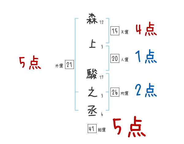 天運![]() | 森上駿之丞さんの天運は15画の4つ星!人徳があり出世する。順調に物事を進め円満な人生。 家系が持つ宿命的な運勢を表します。祖先から受け継いだ苗字ですので自分の力が及びません。家柄を象徴します。 |