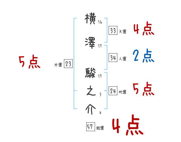 横澤駿之介さんの画数の鑑定結果