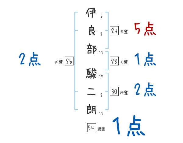 外運![]() | 伊良部駿二朗さんの外運は26画の2つ星!波瀾万丈かも。信頼できる人を大事にしましょう。 生活面を象徴する運勢です。外部から受ける影響力を表し、結婚運、家庭運や職場、環境への順応性を表します。 |