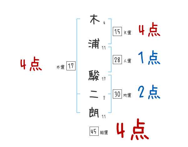 木浦駿二朗さんの画数の鑑定結果