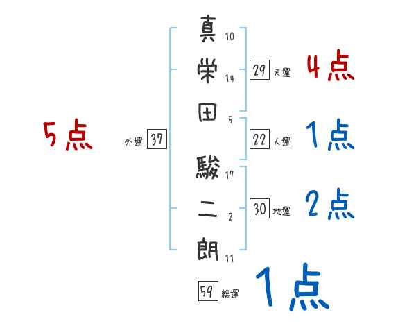 外運![]() | 真栄田駿二朗さんの外運は37画の5つ星!努力家で順応性に優れる。現実的な考え方ができ忠実に物事をこなす。 生活面を象徴する運勢です。外部から受ける影響力を表し、結婚運、家庭運や職場、環境への順応性を表します。 |