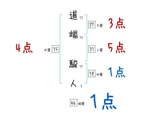 総運![]() | 道端駿人さんの総運は46画の1つ星!迷走することが多く苦労するかも。目先のことにとらわれないように。 あなたの人生を表す1番重要な運勢です。生涯を通じて影響する総合運となり、主に50歳以降の晩年期に影響を及ぼします。 |