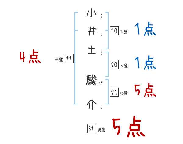 小井土駿介さんの画数の鑑定結果