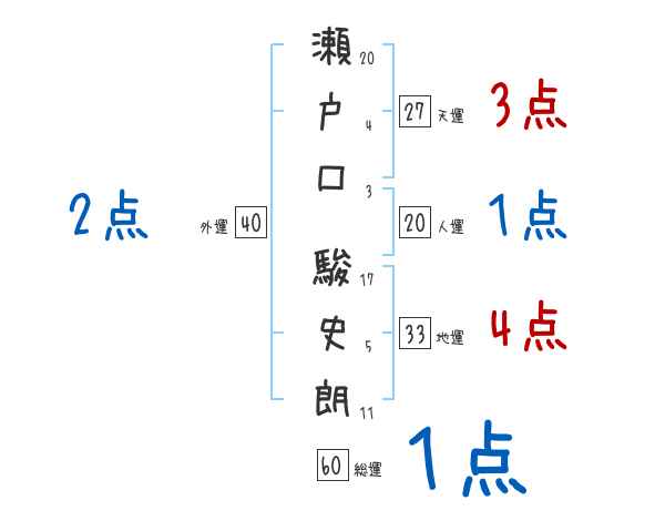 瀬戸口駿史朗さんの画数の鑑定結果