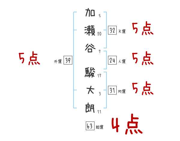 加瀬谷駿大朗さんの画数の鑑定結果