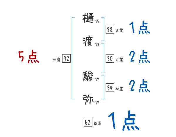 外運![]() | 樋渡駿弥さんの外運は32画の5つ星!柔軟性があり成功する。チャンスが多く金運が良い。 生活面を象徴する運勢です。外部から受ける影響力を表し、結婚運、家庭運や職場、環境への順応性を表します。 |