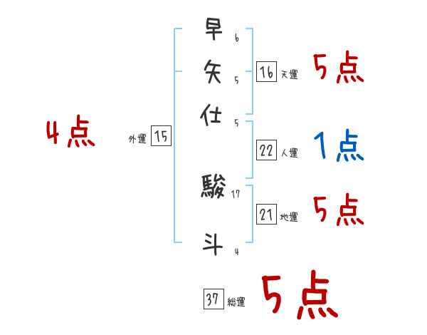 天運![]() | 早矢仕駿斗さんの天運は16画の5つ星!人望が厚く大きく発展する。逆転成功が見える。 家系が持つ宿命的な運勢を表します。祖先から受け継いだ苗字ですので自分の力が及びません。家柄を象徴します。 |