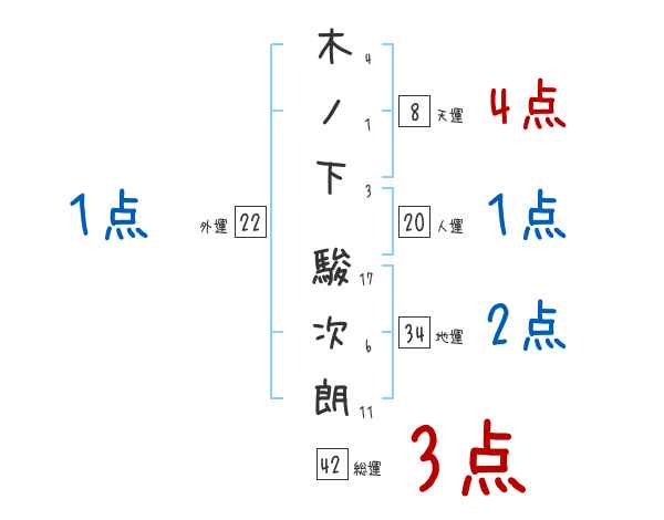 天運![]() | 木ノ下駿次朗さんの天運は8画の4つ星!勤勉家。根気強く努力し成功する。忍耐力がある。 家系が持つ宿命的な運勢を表します。祖先から受け継いだ苗字ですので自分の力が及びません。家柄を象徴します。 |