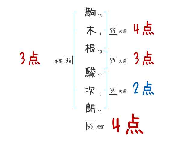 駒木根駿次朗さんの画数の鑑定結果