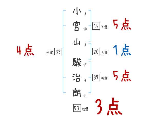 小宮山駿治朗さんの画数の鑑定結果