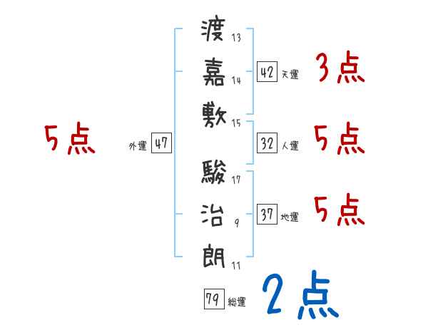 渡嘉敷駿治朗さんの画数の鑑定結果