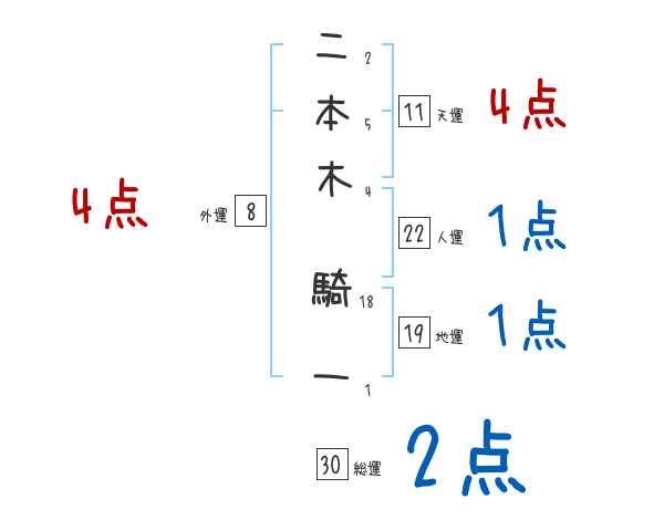 二本木騎一さんの画数の鑑定結果
